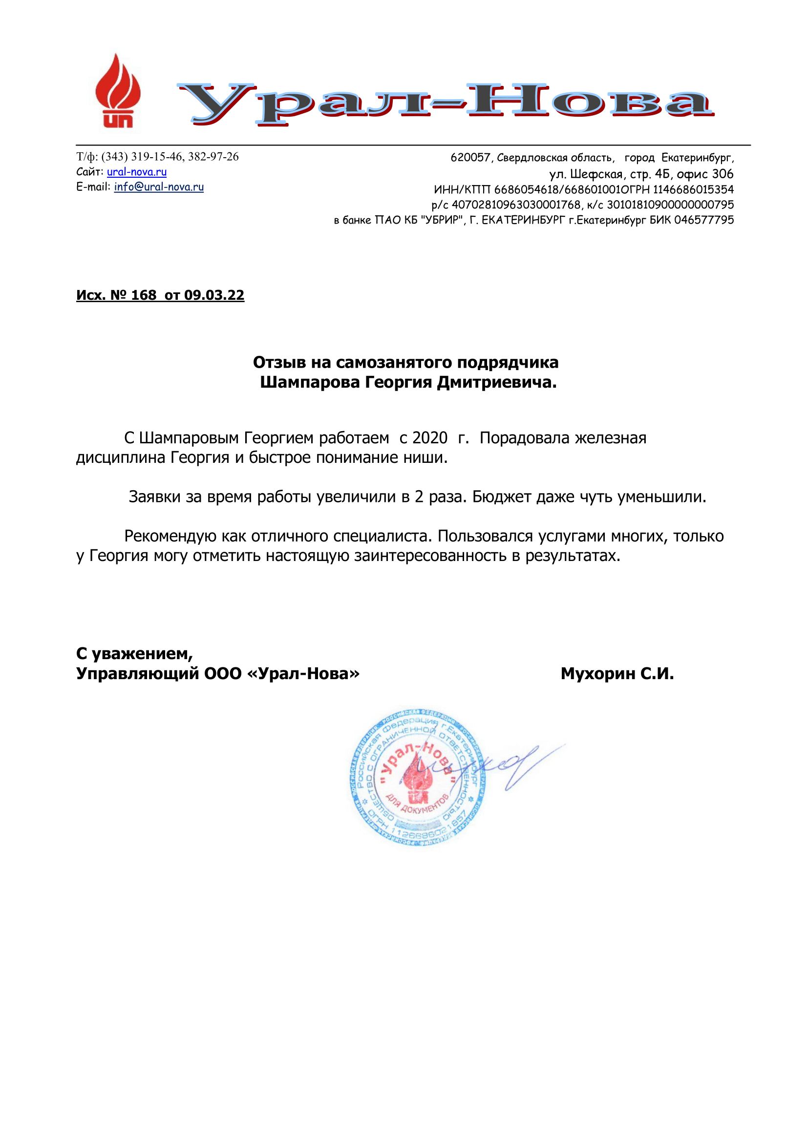 С Шампаровым Георгием работаем с 2020 г. Порадовала железная дисциплина Георгия и быстрое понимание ниши...