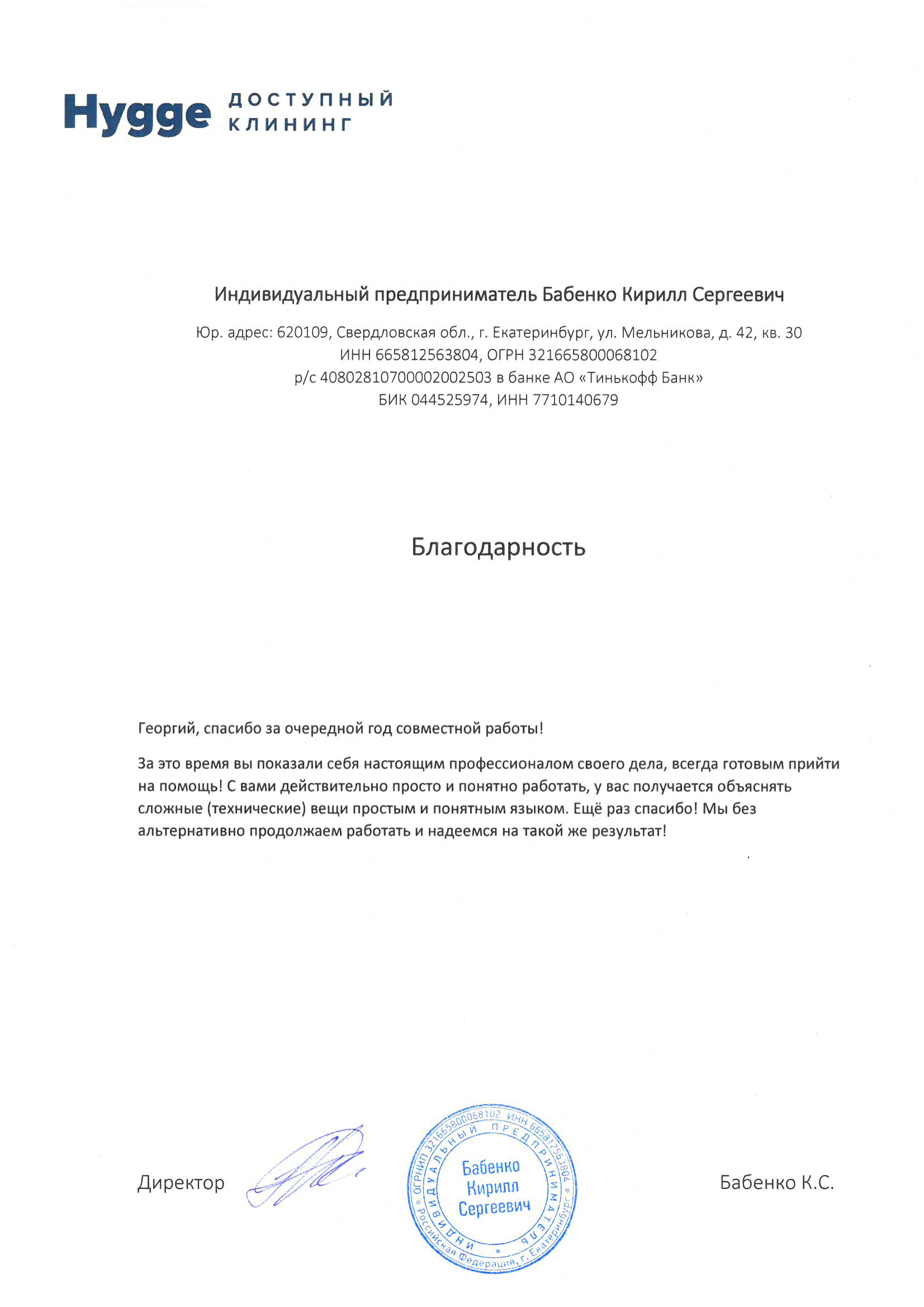 Георгий, спасибо за очередной год совместной работы! За это время вы показали себя настоящим профессионалом...